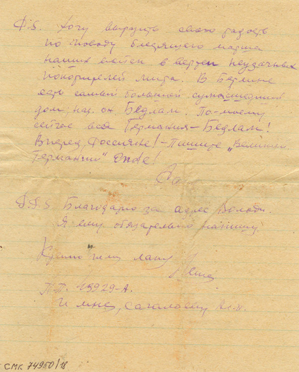 Название предмета Письмо А.П. Сагалаева Людмиле Ноллетовой. 23 января 1945 г.