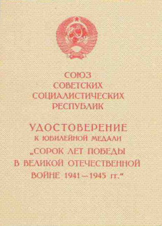Удостоверение к медали «40 лет Победы в Великой Отечественной войне»