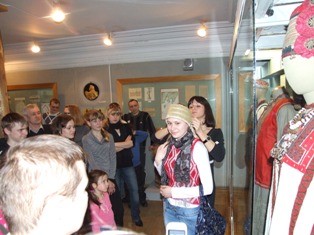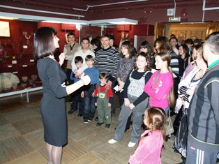 Экскурсия проходила в отделе истории Саратовского края. Она познакомила посетителей с занятиями, заботами и пристрастиями представительниц прекрасной половины человечества, живших на территории Поволжья в разные исторические эпохи – от палеолита до наших дней. Началось все в «первобытной пещере». Посетителям продемонстрировали женские фигурки, вырезанные из кости в V веке до н.э. Они свидетельствуют о том, что особое предназначение женщины как матери, возлюбленной, хранительницы домашнего очага осознавалось нашими предками уже многие тысячи лет назад. В эпоху бронзы усиливается роль парной семьи. Об этом рассказали археологические находки, представленные в музее, а также театрализованная историческая зарисовка с участием «древних людей». Мужчина бурно выражал готовность бросить к ногам своей возлюбленной изысканные украшения: костяные пронизи и бусы из раковин, костяные булавки для скрепления одежды из шкур. Особый восторг испытала она при виде бронзовых височных подвесок, которые во времена дефицита металла были большой ценностью. Все уверения в любви закончились прозой: первобытная дама получила в подарок нехитрое устройство для измельчения зерна. Многие тут же вспомнили, что и современные мужчины частенько считают уместным осчастливить любимую, подарив ей пылесос или кухонный комбайн.